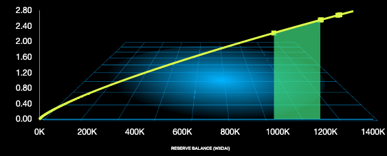 - Opening Price: 2.22 wxDAI, meaning for the initial buy, the first TEC minted by the Augmented Bonding Curve will be priced at 2.22 wxDAI making it the price floor during the Token Freeze.