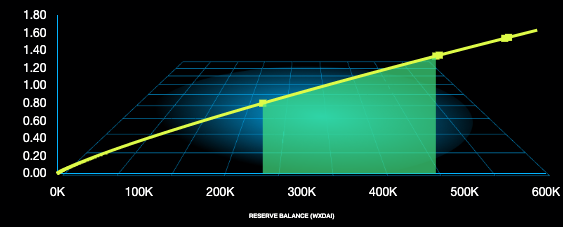 - Entry Tribute: 15.00% meaning that from every BUY order on the ABC, 15.00% of the order value in wxDAI is subtracted and sent to the Common Pool.