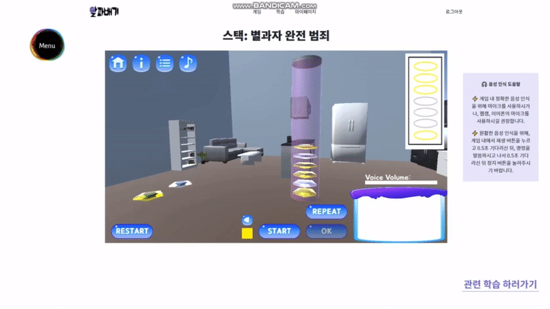 - 윤주엽 - Unity 학습자료 제작, Unity STT 음성 인식 적용, 자료구조(스택) 게임 개발.