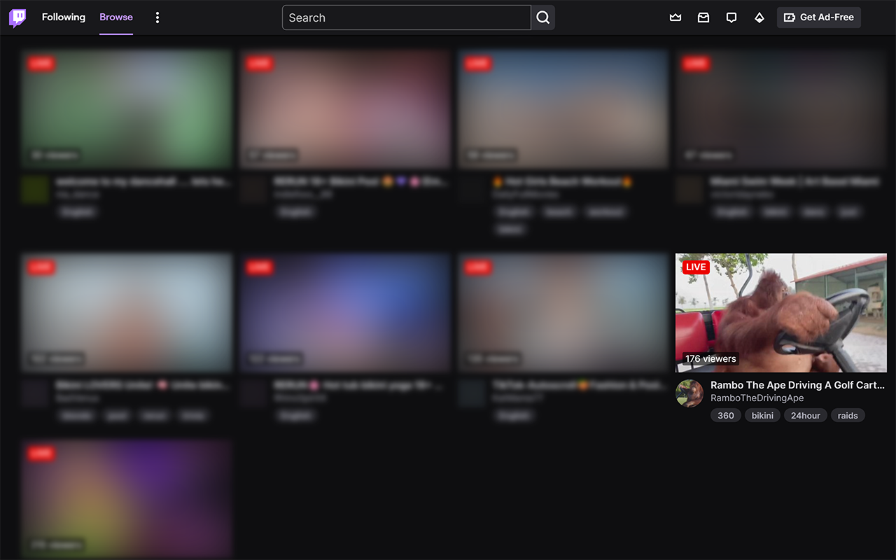Somewhere in 2023, Twitch has changed their ToS regarding nudity in such a way that a flood of streamers began to show more of their body with (usually) the intention of selling their paid content. This resulted in the homepage & entire categories being filled twitch streamers selling their bodies in sexual ways.