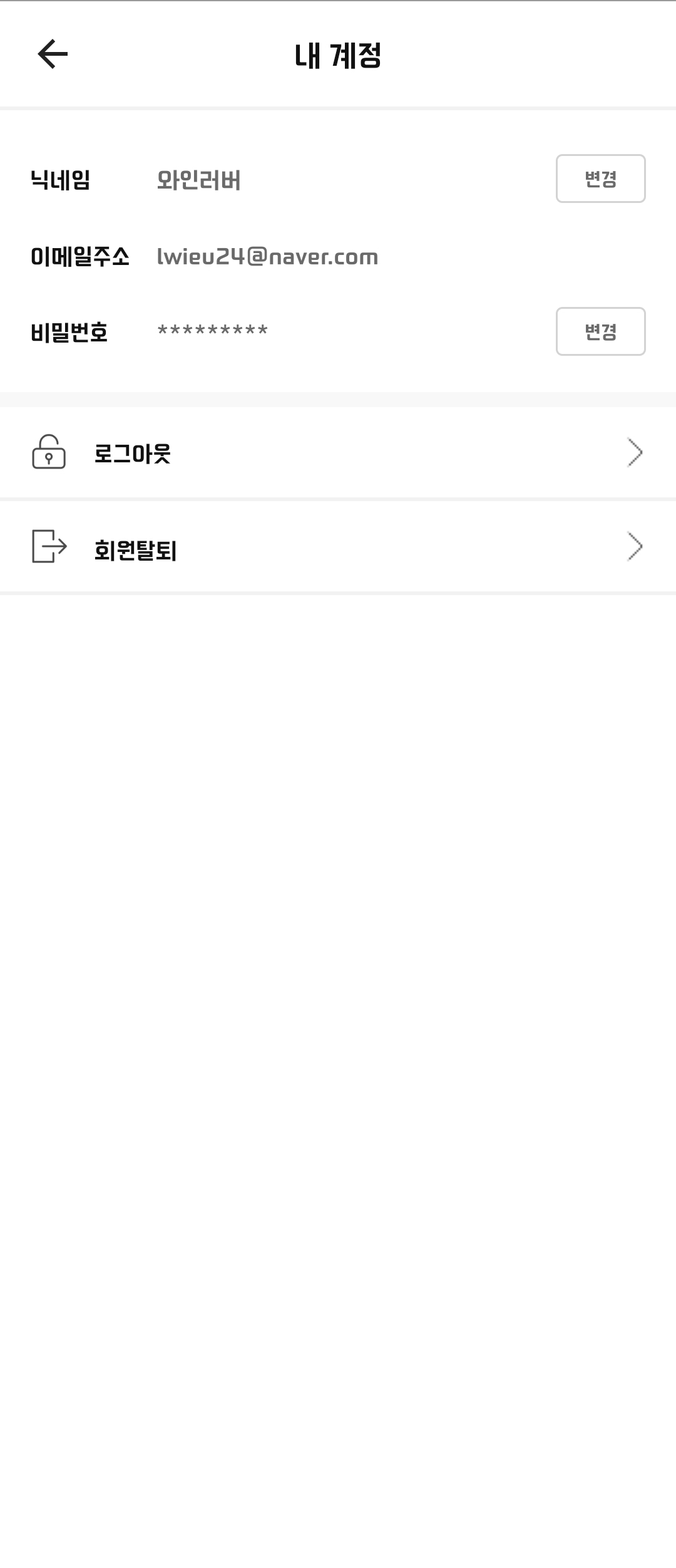마이페이지 전체 레이아웃 및 아이디 변경사항 확인 요청
