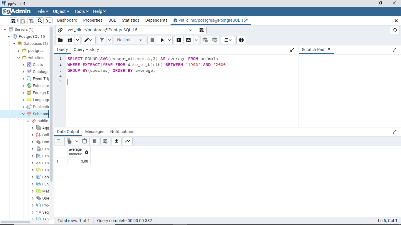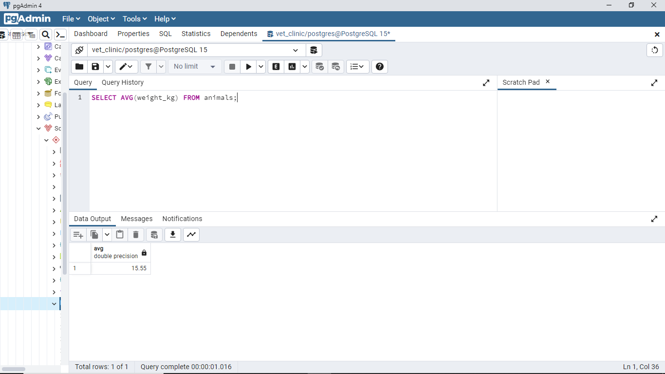 15.55and not16.136363. By the time you update the transactions that should delete all animals born after 01/01/2022, you would have15.55as the average weight of animals. Kindly update the screenshot for this query after the transaction. 👍 💻