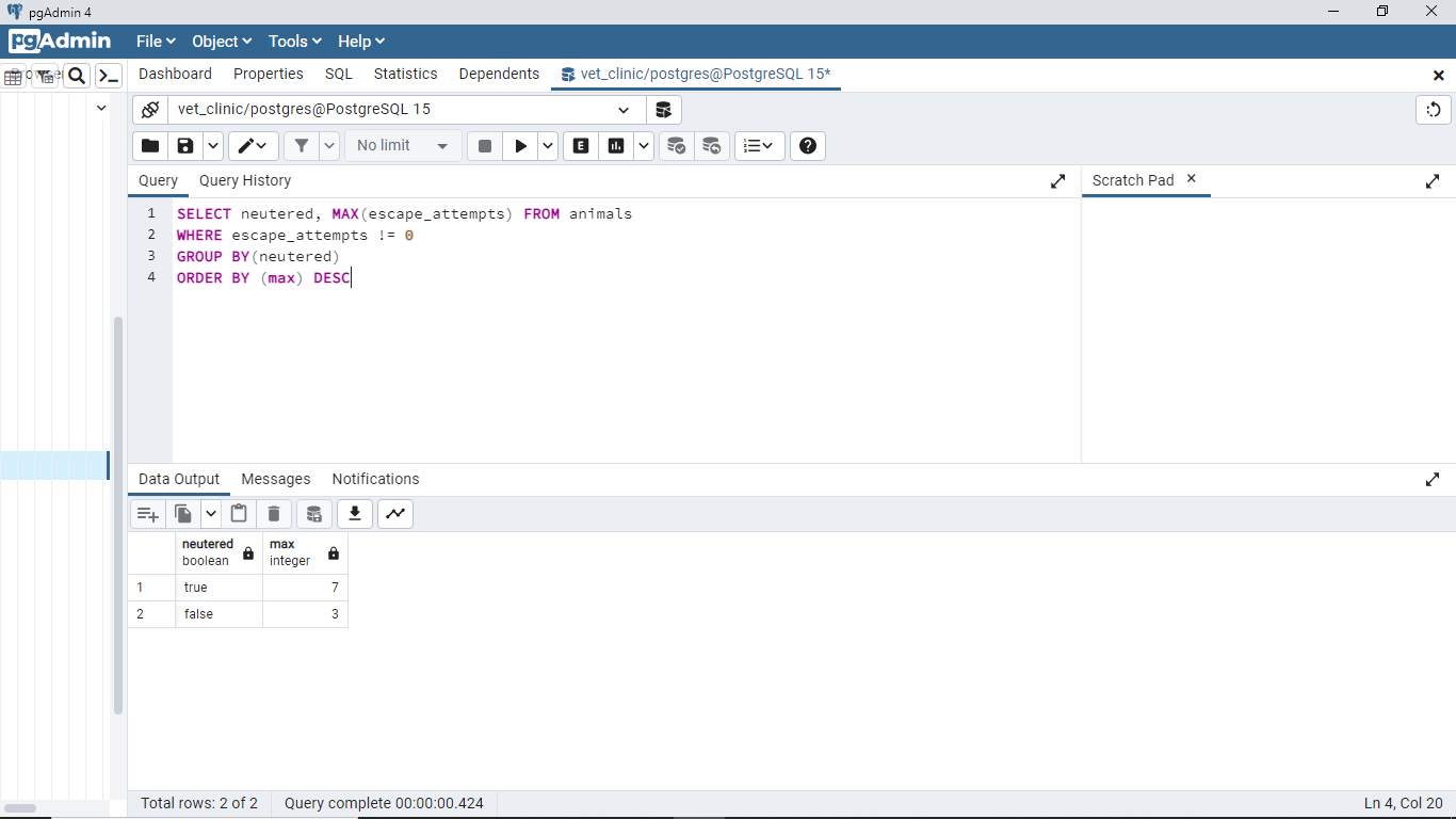 Vet clinic database: query and update table#3