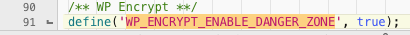 define('WP_ENCRYPT_ENABLE_DANGER_ZONE', true);