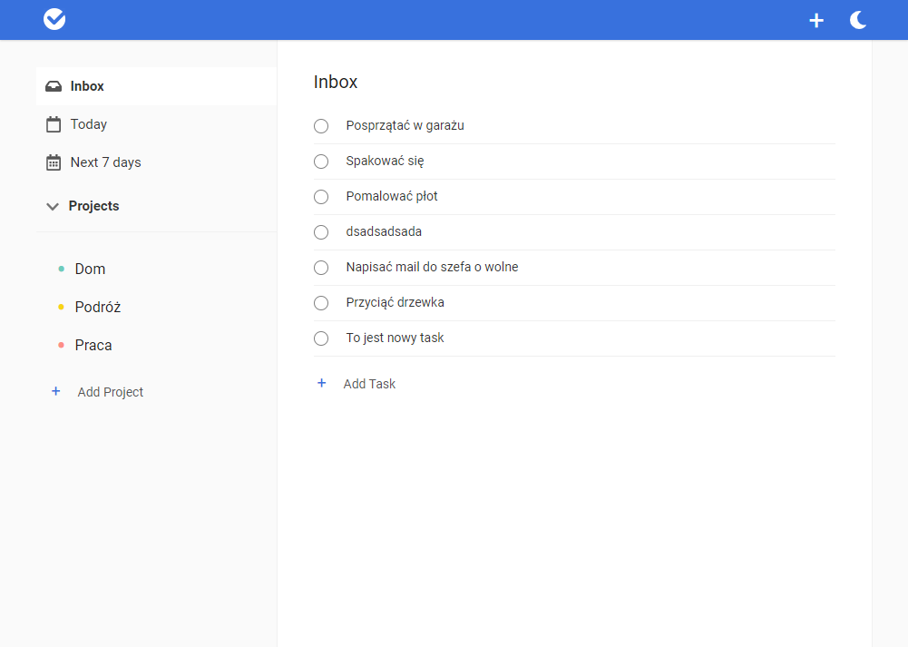 git clone https://github.com/karlosos/react-todoist/virtualenv .venv.venv\Scripts\activateorsource .venv/bin/activatepip install -r requirements.txtpython manage.py migratepython manage.py createsuperuser --email admin@example.com --username adminpython manage.py runserver- Open http://127.0.0.1:8000/api/v1/ or http://127.0.0.1:8000/swagger/ to view documentation.