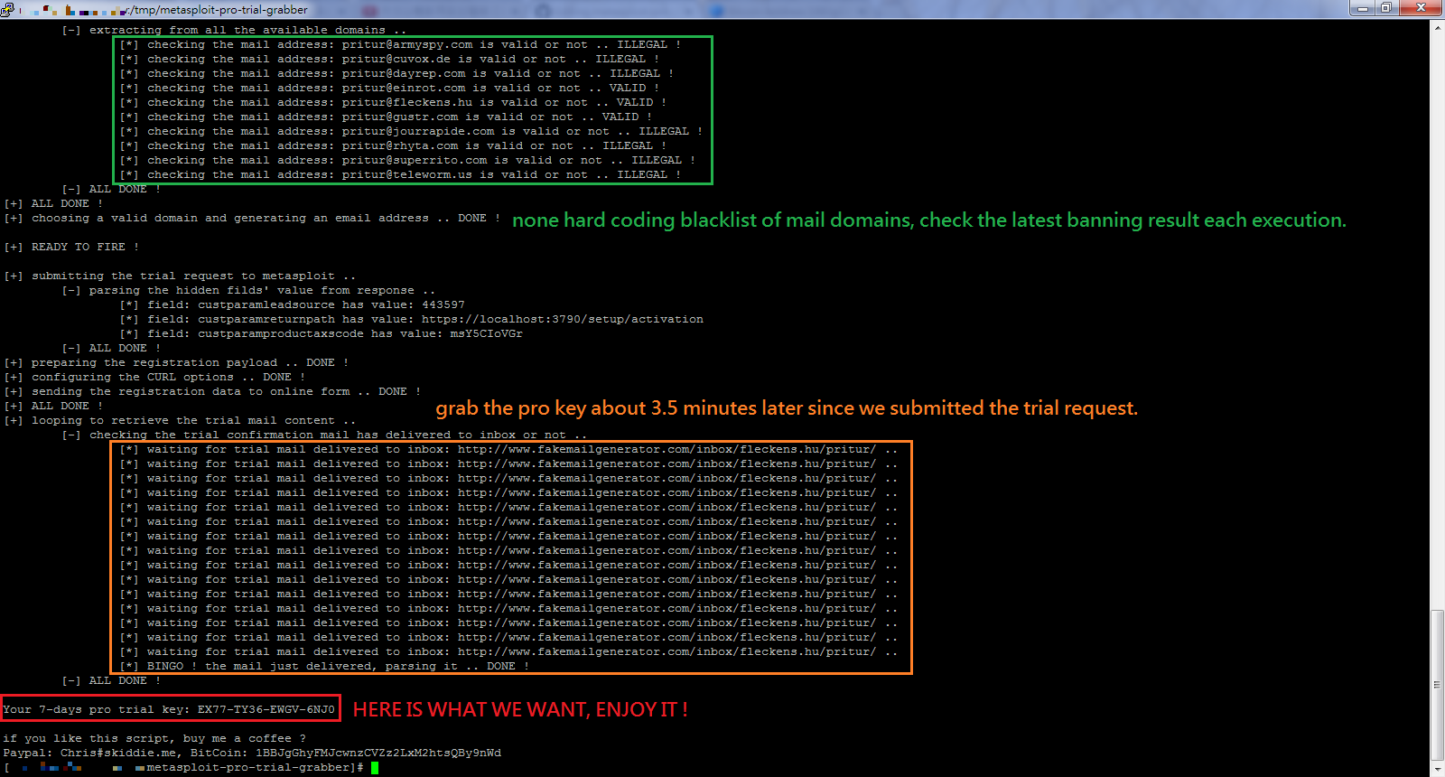 This is a PHP command-line script to auto-grab the Metasploit's [14-DAYs pro trial key].