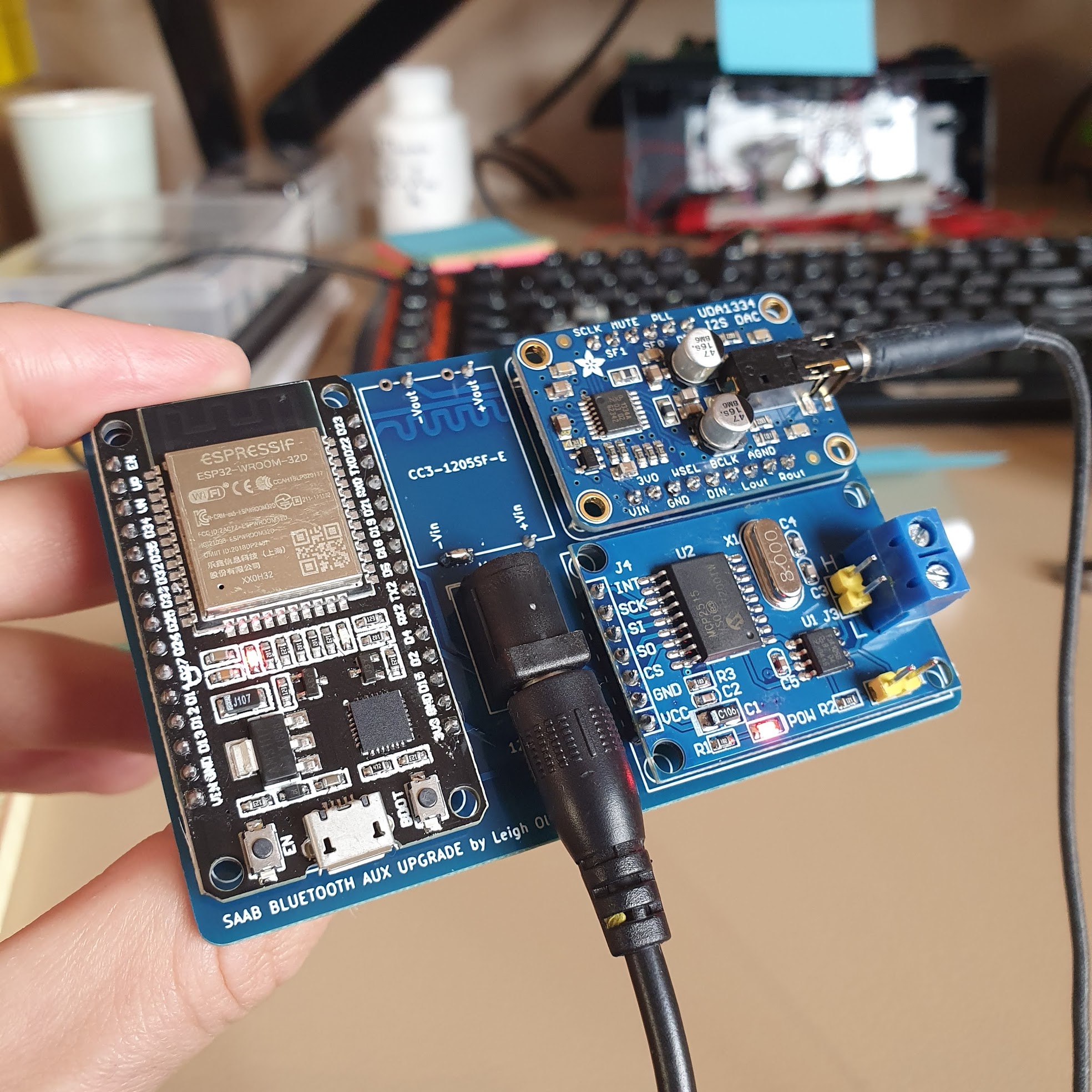 A module to augment the Aux-In functionality of SAAB 93NG's (2002/3+), to add Bluetooth media playback and steering wheel media control support.