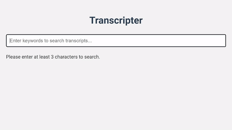 Transcripter is a tool for indexing and searching YouTube video transcripts. It makes use of the YouTube Data API to fetch video details and transcripts, and collates and stores the transcript chunks in Redis for efficient full-text search.