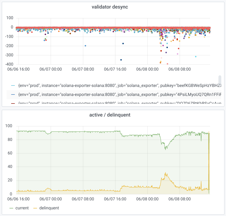 - solana_validator_delinquent - Whether node considers each validator to be delinquent.