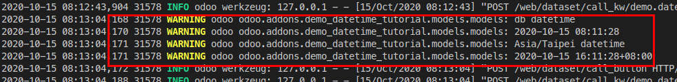 在 odoo 中所有的 date 和 datetime 都是使用 UTC 的時間 (包含保存進資料庫 db 的資料).
