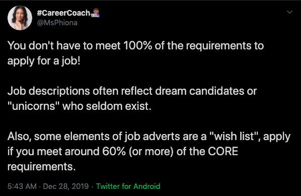 - Nunca necesitamos el 100% de los requerimientos listados, la mayoría de las veces alcanza con tener al menos el 50% para aplicar